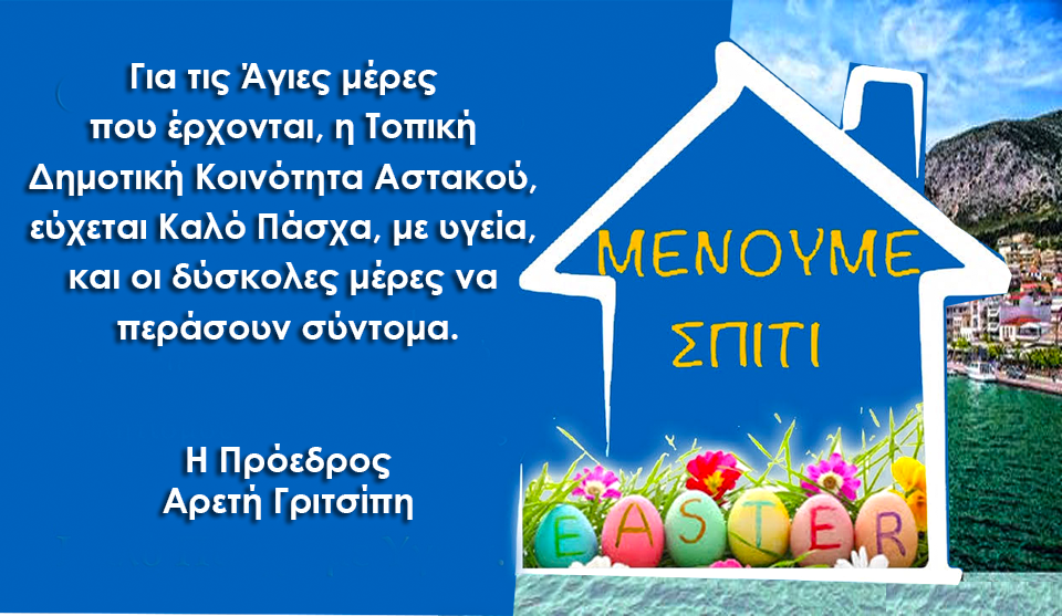 Ευχές για Καλό Πάσχα από την Τοπική Δημοτική Κοινότητα Αστακού Θέματα:xiromero newsxiromero pressxiromeronewsxiromeropressΞηρόμερο Νέα Συντάκτης: admin 14 Απριλίου, 2020 Για τις Άγιες μέρες που έρχονται, η Τοπική Δημοτική Κοινότητα Αστακού, εύχεται Καλό Πάσχα, με υγεία, και οι δύσκολες μέρες να περάσουν σύντομα. Η Πρόεδρος Αρετή Γριτσίπη Άρθρο από:ΞηρόμεροNews