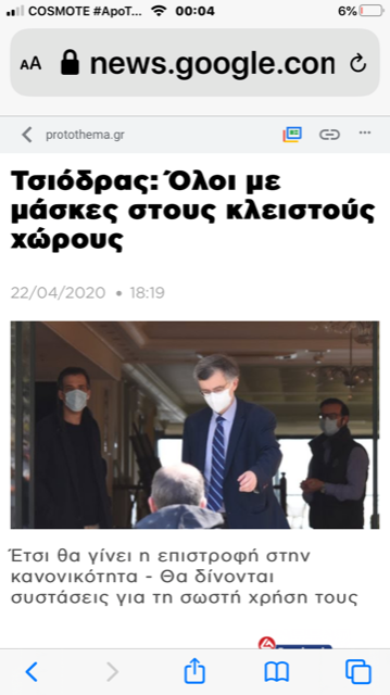 Αλλά μέχρι τότε υπερβολική προσοχή με την σχολαστική εφαρμογή όλων των προστατευτικών μέτρων ακόμη και όταν σε 10 ημέρες περίπου πιθανότατα θα αρθεί η Καραντίνα.!!!